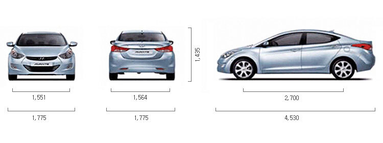 차량 크기는 앞이나 뒤에서보면 대충 아반떼MD 랑 비슷한 듯 하다.