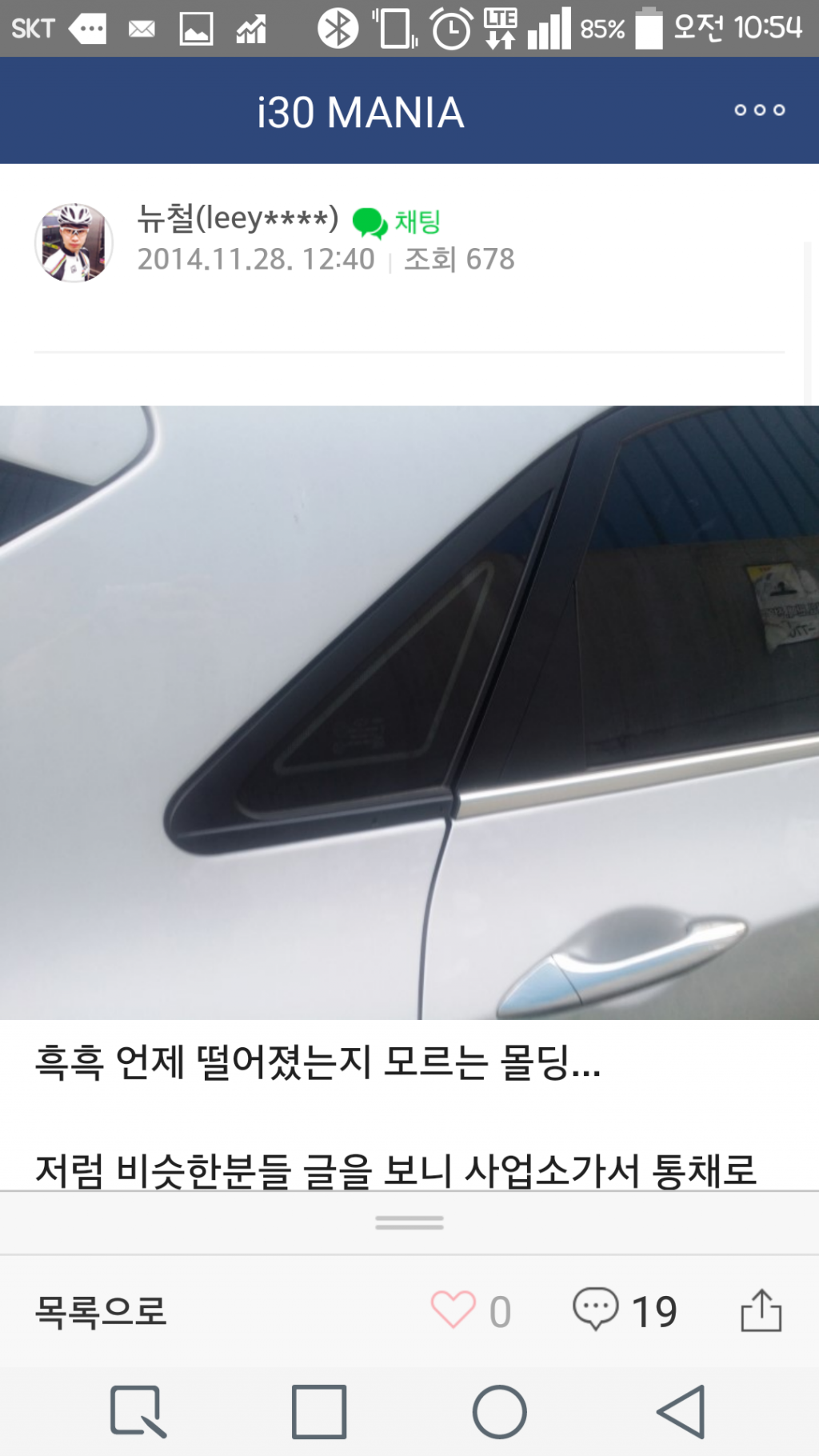 많은 사람들이 i30의 몰딩떨어진 증상에 대해 얘기를 하고 있더라.