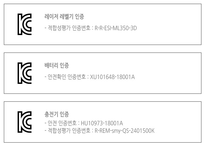 기타 특징 : 최소 7mm 거리 측정, 연속 10시간 사용, 경사측모드 사용가능, 자동보정범위 3도 벗어나면 경고음알림