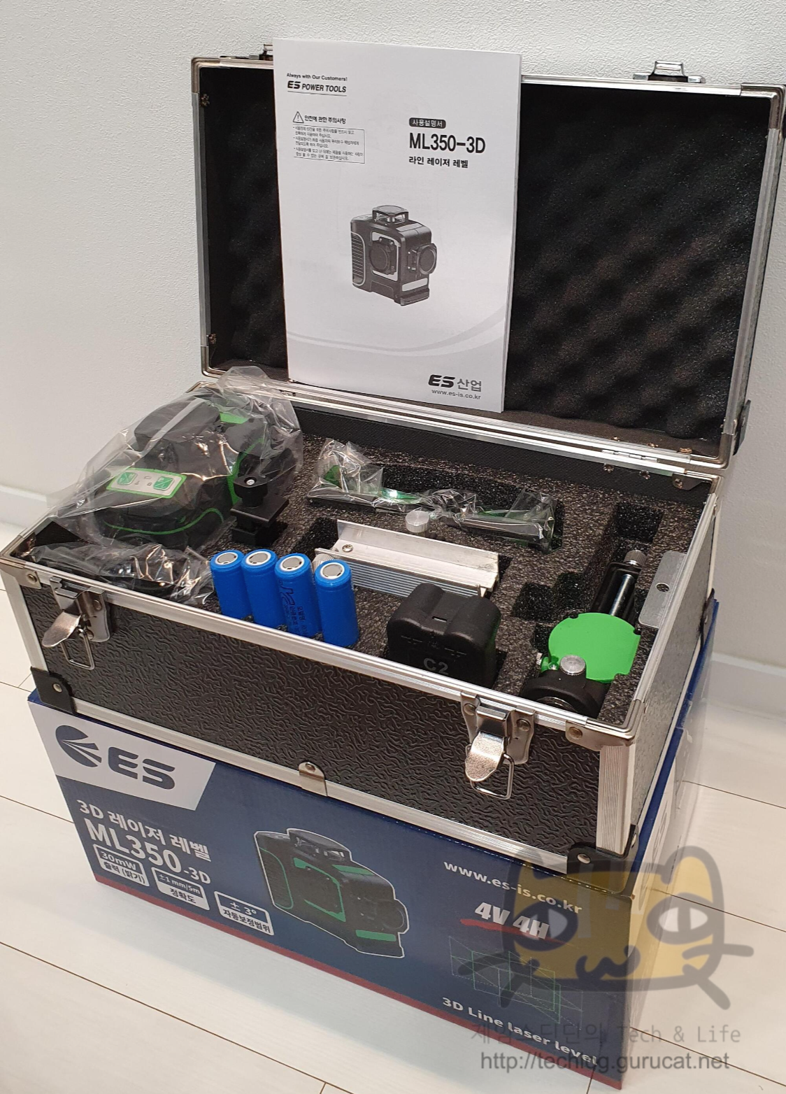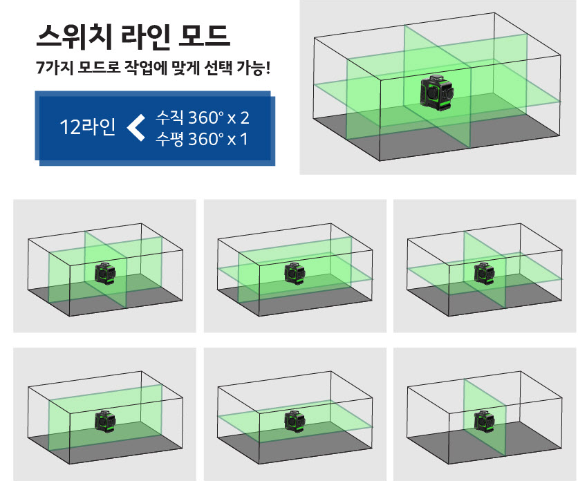 기타 특징 : 최소 7mm 거리 측정, 연속 10시간 사용, 경사측모드 사용가능, 자동보정범위 3도 벗어나면 경고음알림