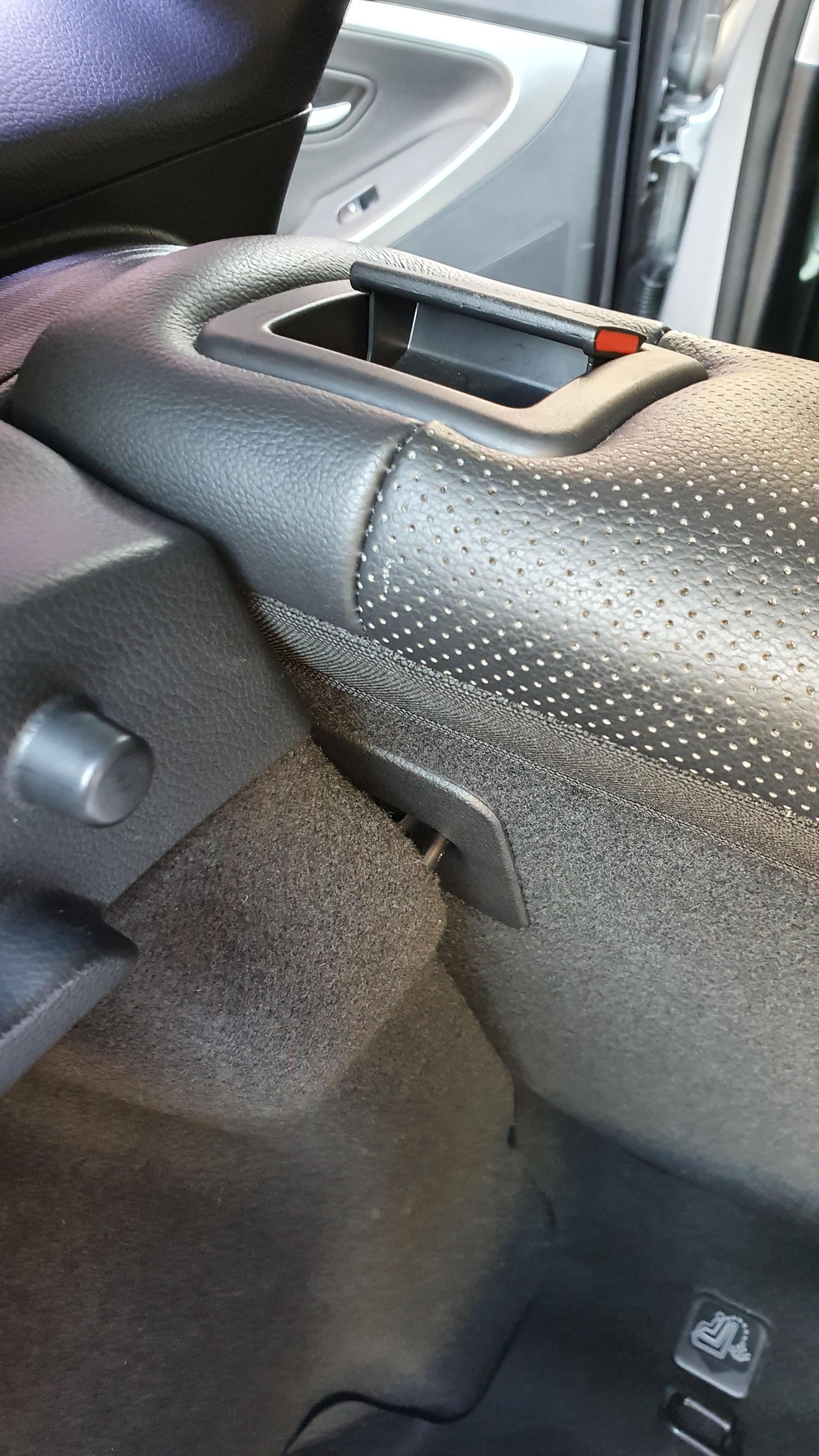 운전석쪽 뒷좌석 시트등받이가 고정이 안되어 있는 것임.