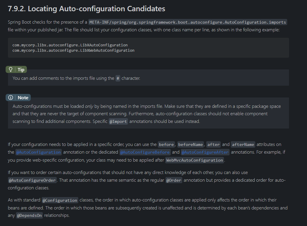 레퍼런스 문서에서 'auto-configuration' 관련 키워드로 급하게 찾아보니, 3.X 버전부터는 META-INF/spring/org.springframework.boot.autoconfigure.AutoConfiguration.imports 파일에,