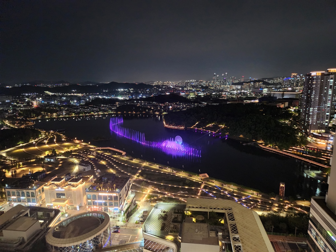 동탄2신도시 라크몽 에서 호수공원 쪽을 바라본 야경이다.