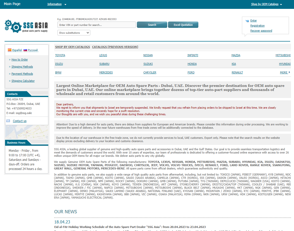 Auto Spare Parts Online Store, Dubai, UAE - SSG.ASIA