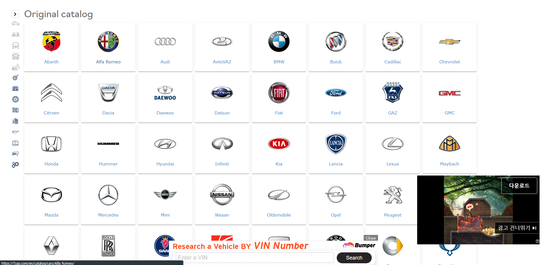 7zap과 비슷하게 각종 수입차들의 부품을 조회 할 수 있다.