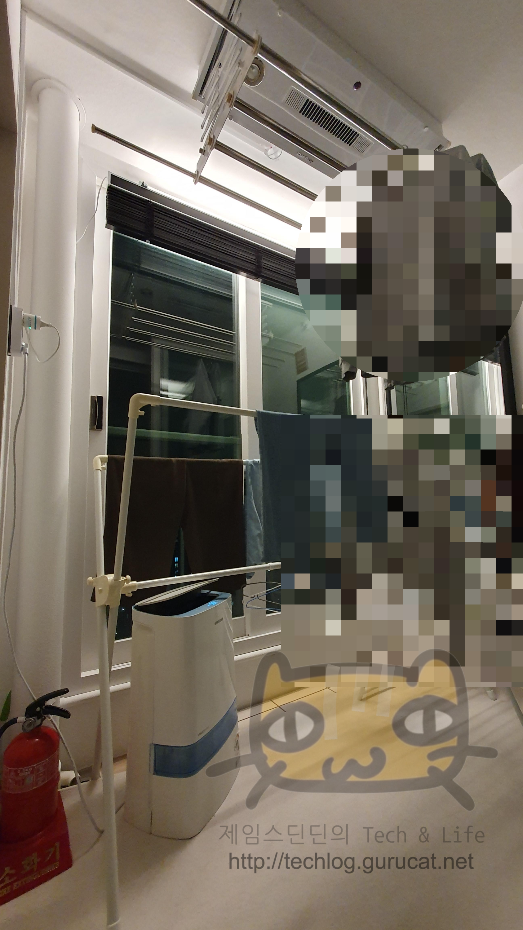 안방 콘센트에서 멀티탭으로 전기를 끌어와 빨래를 건조시키곤 했지만, 전선때문에 샷시문을 꽉 닫을 수 가 없으니 불편함이 이만저만이 아니었다. 전선두께만큼 열린 샷시문 틈으로 들어오는 제습기의 소음과, 여름에는 빠져나가는 에어컨의 냉기. 그리고 겨울에는 슬금슬금 밀려들어오는 추위.