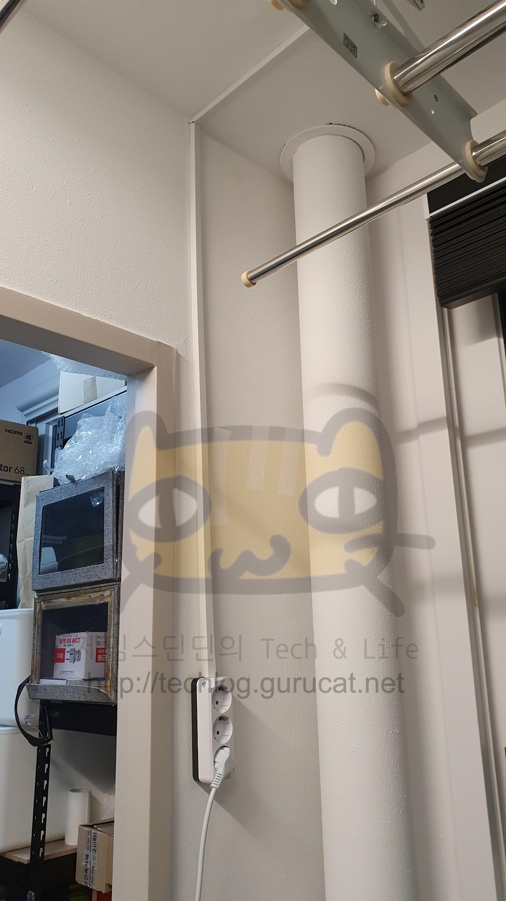 전기는 천장의 전동 빨래 건조대의 것을 따내어(분기시켜) 콘센트로 만들면 될 것으로 판단했다.