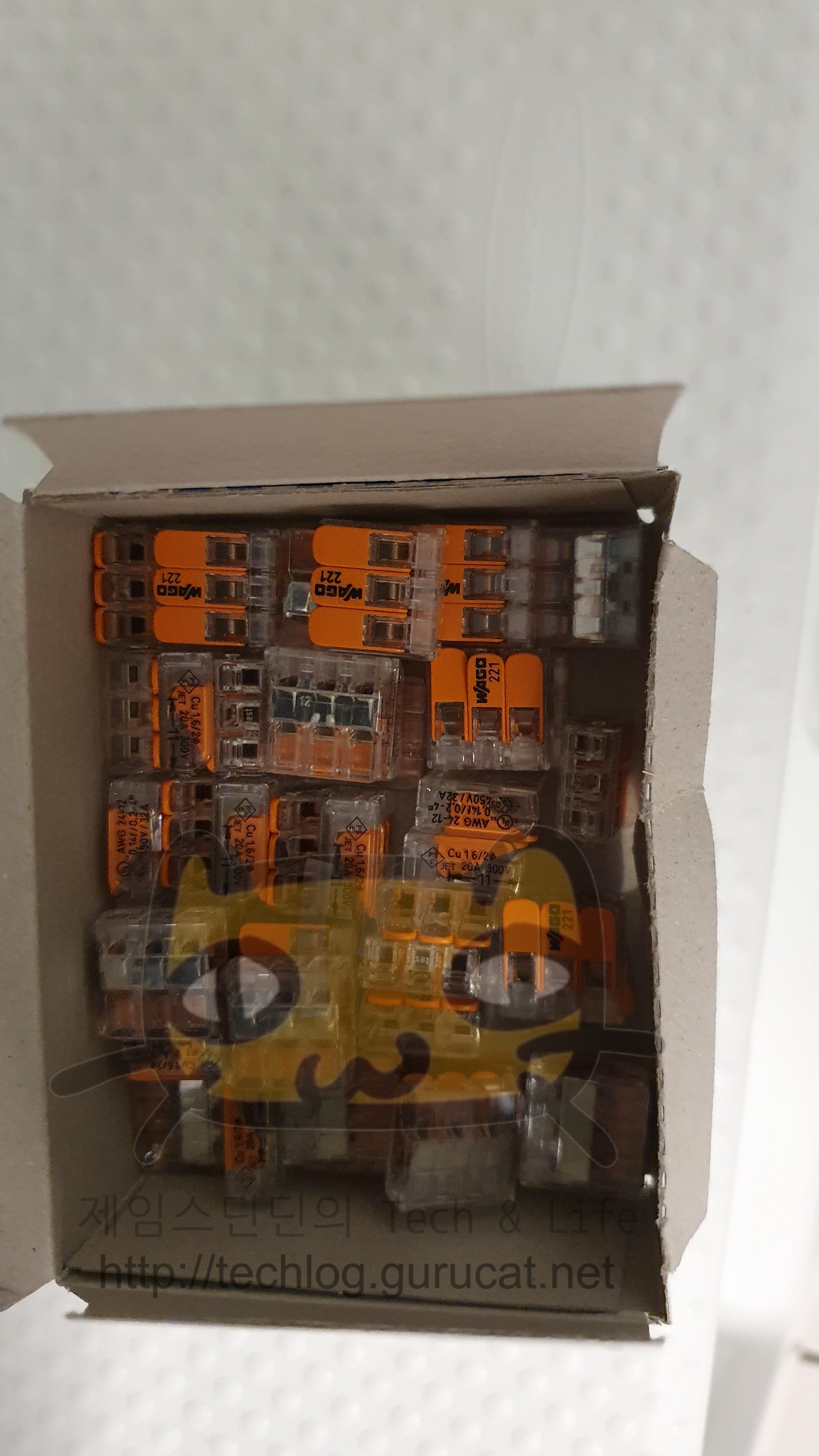 2.5스퀘어 굵기면 충분하고, 커넥터는 '와고' 라는 이름의 커넥터로, 전선끼리 연결 해주는 용도이다.