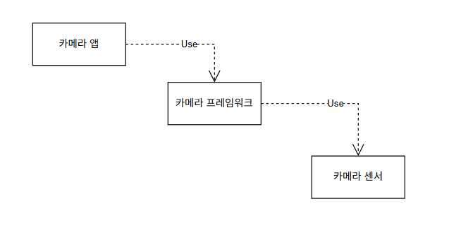 예를들어, 하위모듈인 '카메라센서' 모듈은 카메라센서 시작, 중지, 정지화면 촬영, 연속화면 촬영(동영상) 등의 기능을 제공할 수 있고 상위모듈인 '카메라 앱'은 이 제공되는 기능들을 사용하는 의존성 관계이다.