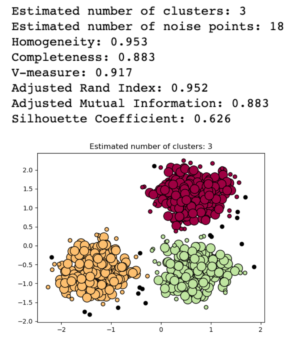 print('Estimated number of noise points: %d' % n_noise_)
